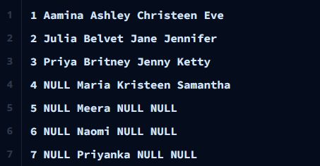 Note: Print NULL when there are no more names corresponding to an occupation.